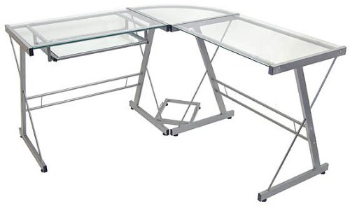 This contemporary desk offers a sleek modern design crafted with durable steel and thick tempered safety glass. The L-shape provides a corner wedge for more space and the design creates a look that is both attractive and simple. Flexible configuration options allow you to mount the keyboard tray on either side of the desk. Also included are a universal autonomous CPU stand and a sliding keyboard tray. This desk compliments any room and is a great addition to any home office. Read moreRelateItems